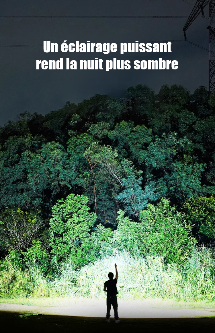 Ne vous laissez pas tromper par sa taille ! Elle émet un faisceau de 6000 lumens capable d'illuminer tout un bâtiment.La nuit se transforme en jour ! 💡